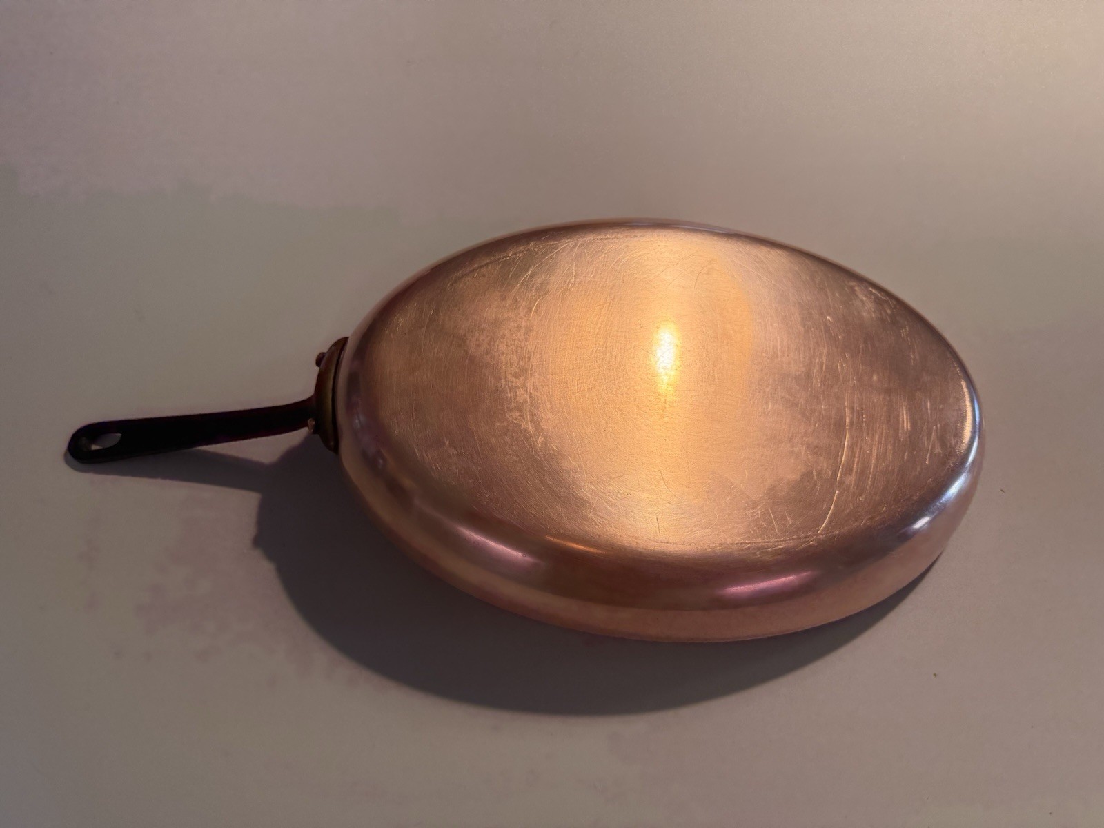 Bad Tin: If you see orange copper showing through the silver scratch marks, the pan needs “retinning.” That costs money ($50+), so only buy those if the pan is dirt cheap.