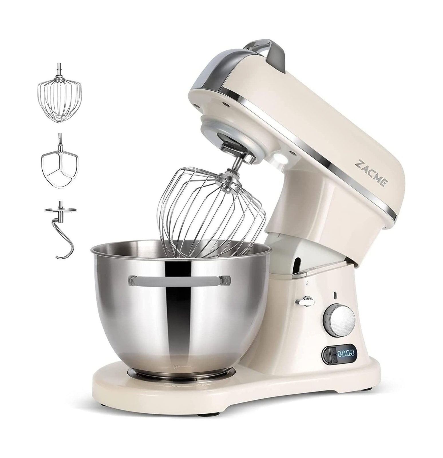 - LED Display & Countdown Time & Function Tilt Head Design: The stand mixer featured a digital display to show the operation time and setting. It can set a countdown time, allowing you to do other things while the blender is working, effectively saving you time. The tilt-head design not only switches the accessories conveniently but also take down the bowl easily.