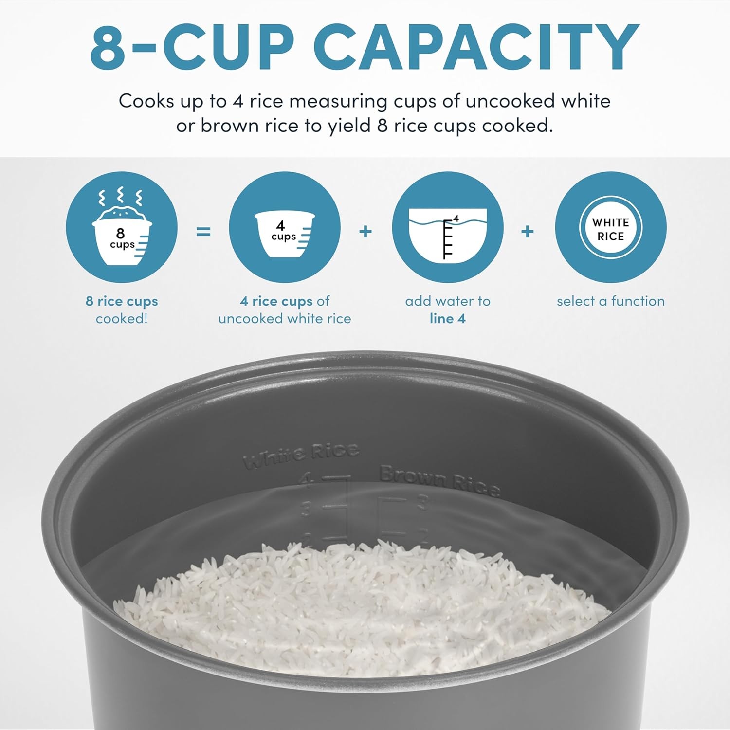 - Perfectly prepares 2 to 8 cups of any variety of cooked rice or grains