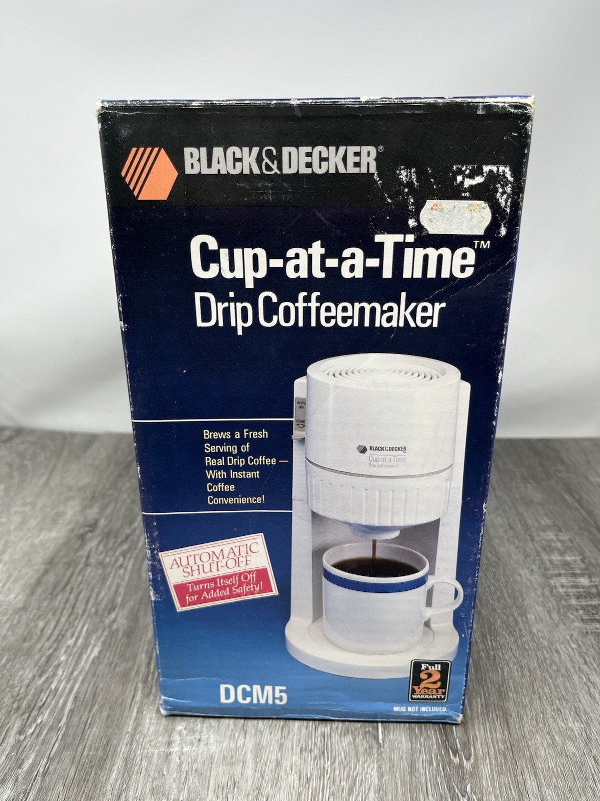 The Black & Decker DCM5 Cup at a Time Drip Coffee Maker is a one-cup coffee maker that operates on a simple yet effective principle of dripping hot water onto coffee grounds to create a delicious cup of coffee. Made of durable plastic, this white-colored coffee maker is easy to use and clean, making it a convenient addition to any kitchen. With the brand reputation of BLACK+DECKER, you can trust in the quality and reliability of this model.