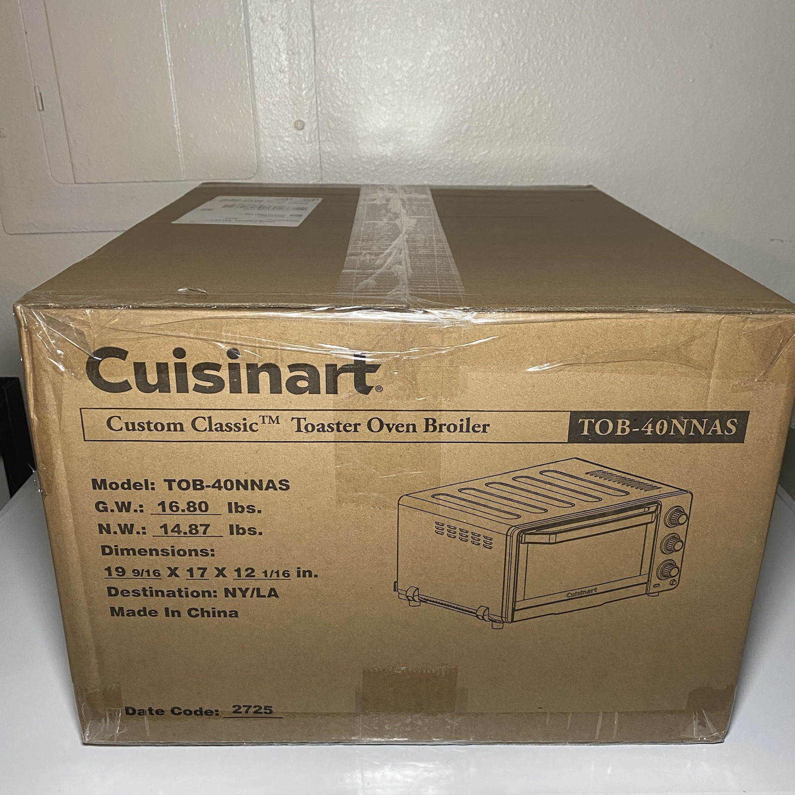 The Cuisinart TOB-40N Classic Toaster Oven Broiler is a powerful 1800W electric appliance designed for toasting and baking tasks in the kitchen. Made of durable stainless steel with a sleek silver finish, this toaster oven features an integrated timer and a convenient timer function. With a compact size of 16.29 inches in length, 8.9 inches in height, and 14.63 inches in width, it is versatile for various kitchen needs while weighing 21 lbs. The Cuisinart TOB-40N is a reliable and efficient kitchen appliance that combines convenience and functionality for home cooking. Never opened, only opened boxed that was shipped in for picture.