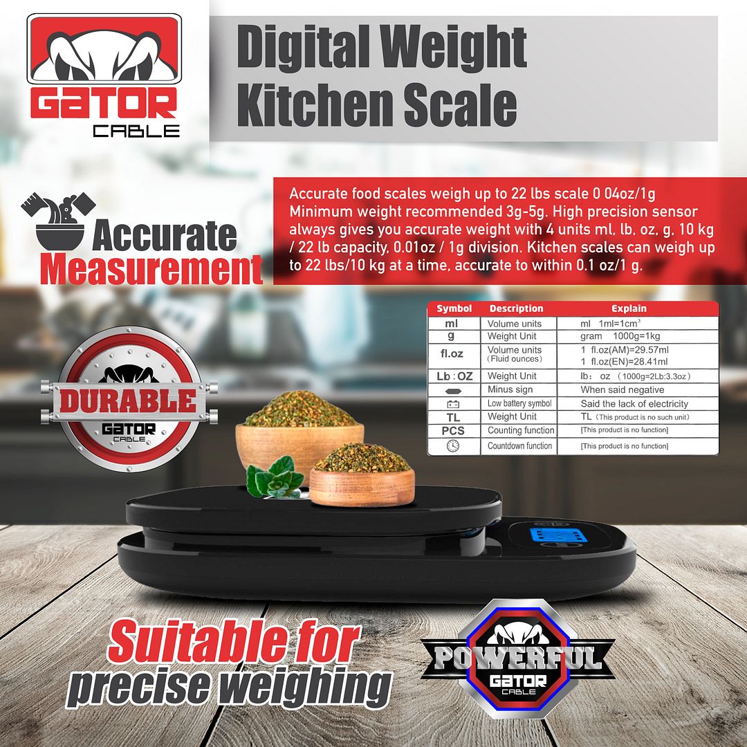 ![]() ![]() Gator Cable Digital Weight Kitchen Scale Medium Size for Up to 22 lb – 10kg