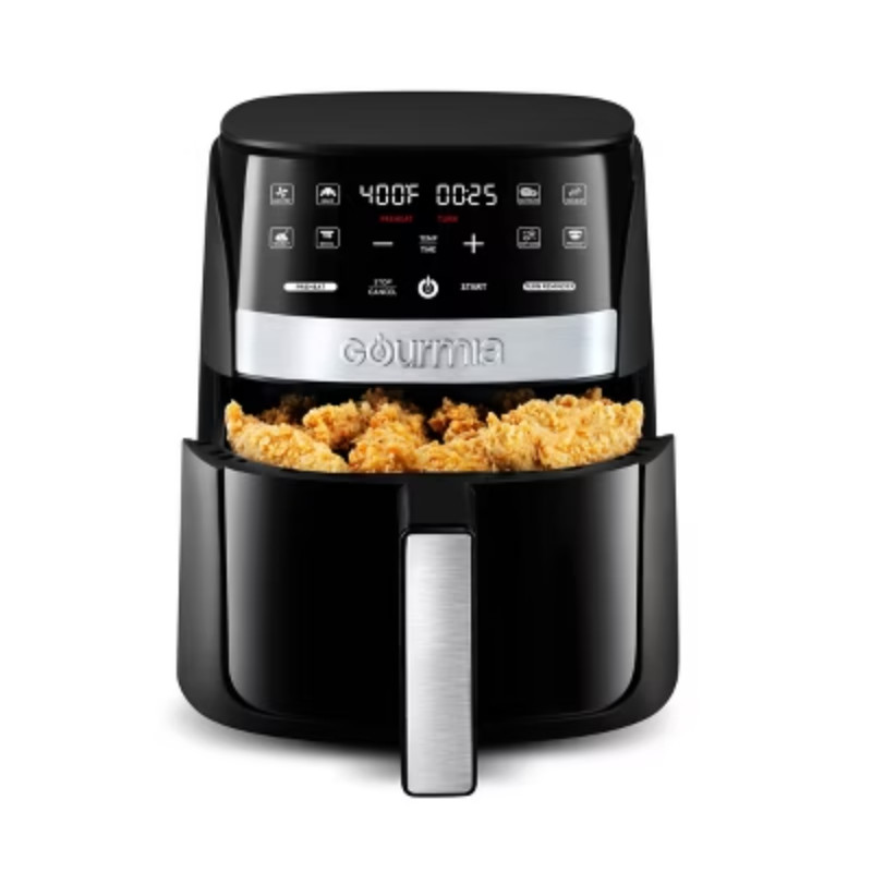 Never settle with the Gourmia 3-QT. Digital Air Fryer, the air fryer that looks like perfection and cooks to perfection. Cook with a tap of 8 One-Touch Cooking Functions and let FryForce 360° Technology™ cook your food to a crispy finish in no time. An optional Preheat and Turn Food Reminder offer ultimate convenience, while Guided Cooking Prompts walk you through the cooking process with helpful alerts and display messages. Turn cleanup from messy to easy with a nonstick dishwasher safe basket and crisper tray.