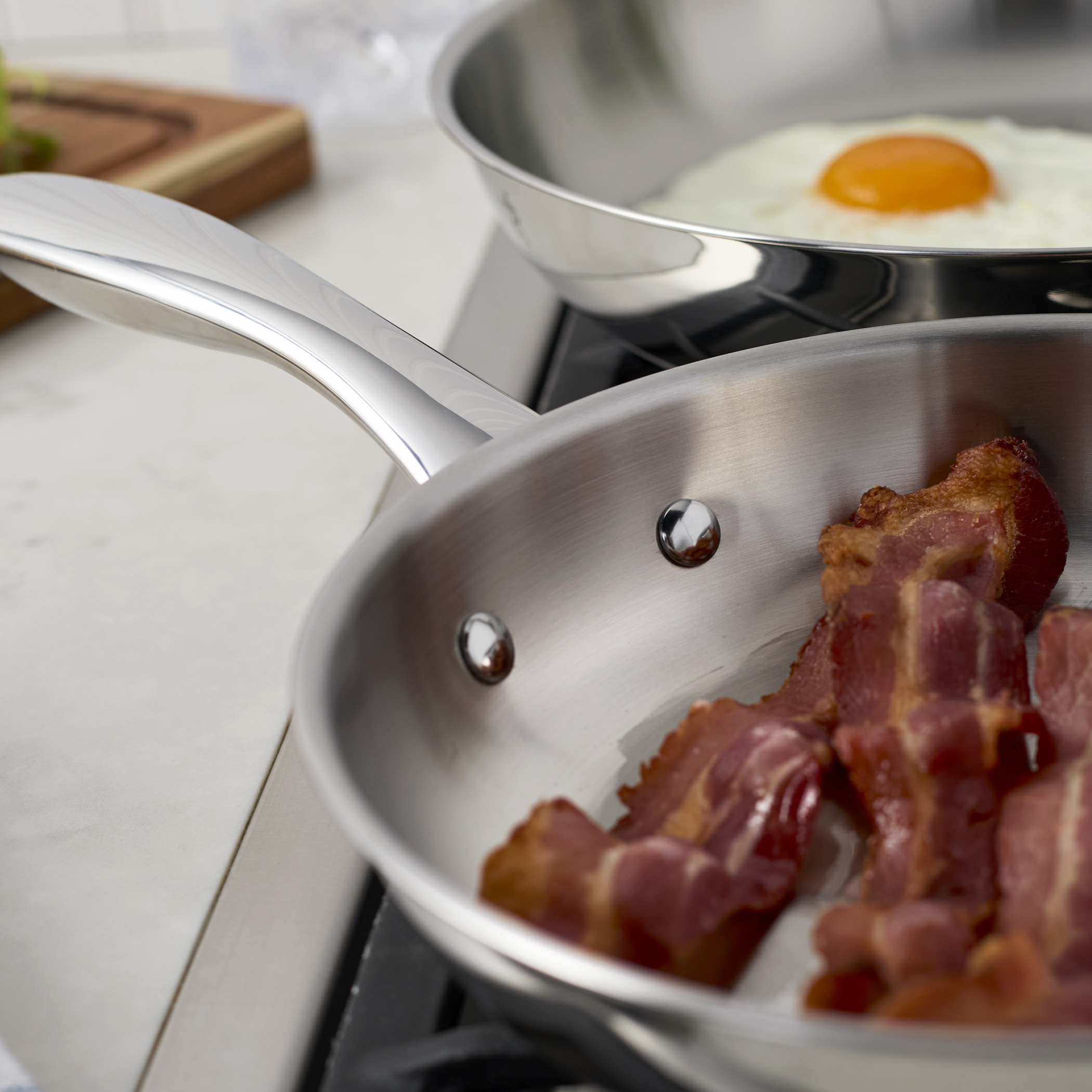Crafted with premium materials, Aragon cookware delivers versatility and efficiency to the kitchen. The tri-ply encapsulated base with an aluminum core heats up evenly, and the comfortable, stay-cool handles provide easy maneuvering on the stovetop. With a highly polished mirror finish, Aragon adds style and sophistication to any kitchen.