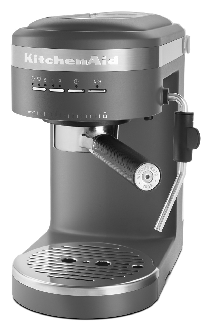 Creating quality espresso drinks at home is easy and fun with the KitchenAid® Semi-Automatic Espresso Machine. The same process used at the coffeehouse has been simplified for at-home use. Put your own personal twist on espressos, macchiatos, cappuccinos, martinis, affogatos… whatever you’re in the mood to make. Dual, smart temperature sensors maintain the perfect brewing temperature shot after shot. And the fast-heating thermocoil technology heats water up to the ideal brewing temperature in less than 40 seconds. Rich, creamy espresso is just a grind, tamp and brew away.