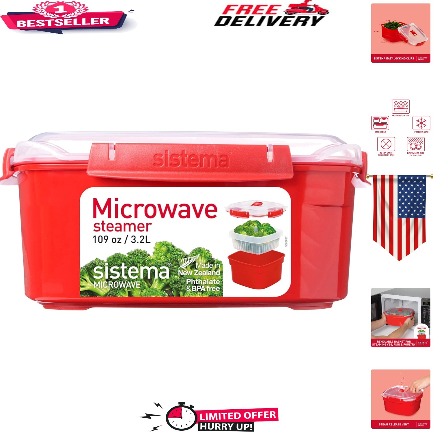 Large 3.2L Microwave Food Steamer with Removable Basket – BPA & Phthalate Free